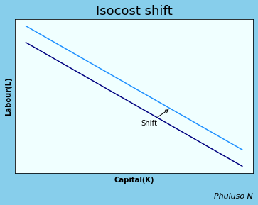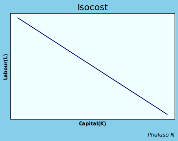 \( slope={wages\over rent }\) ,a steeper slope implies a higher degree of substitution between rent and wages. Isocost curves help firms determine the most cost effective combination of labour and capital, like how much labour to employ and how much capital to buy.