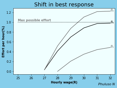 The workers best response shows the amount of work that an employer chooses to perform for each wage that the employer may offer.