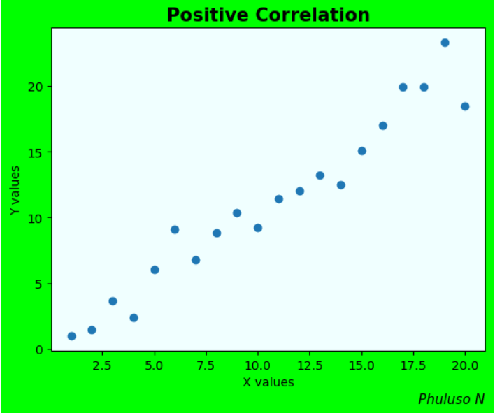 Correlation shows how strongly related 2 values are; in statistics, it is expressed numerically by the correlation coefficient(r). A positive correlation means that 2 values increase and decrease at the same time, and a negative correlation means that when one variable is increasing, the other is decreasing and vice versa. However, just because 2 events are correlated, doesn’t mean one caused the other.